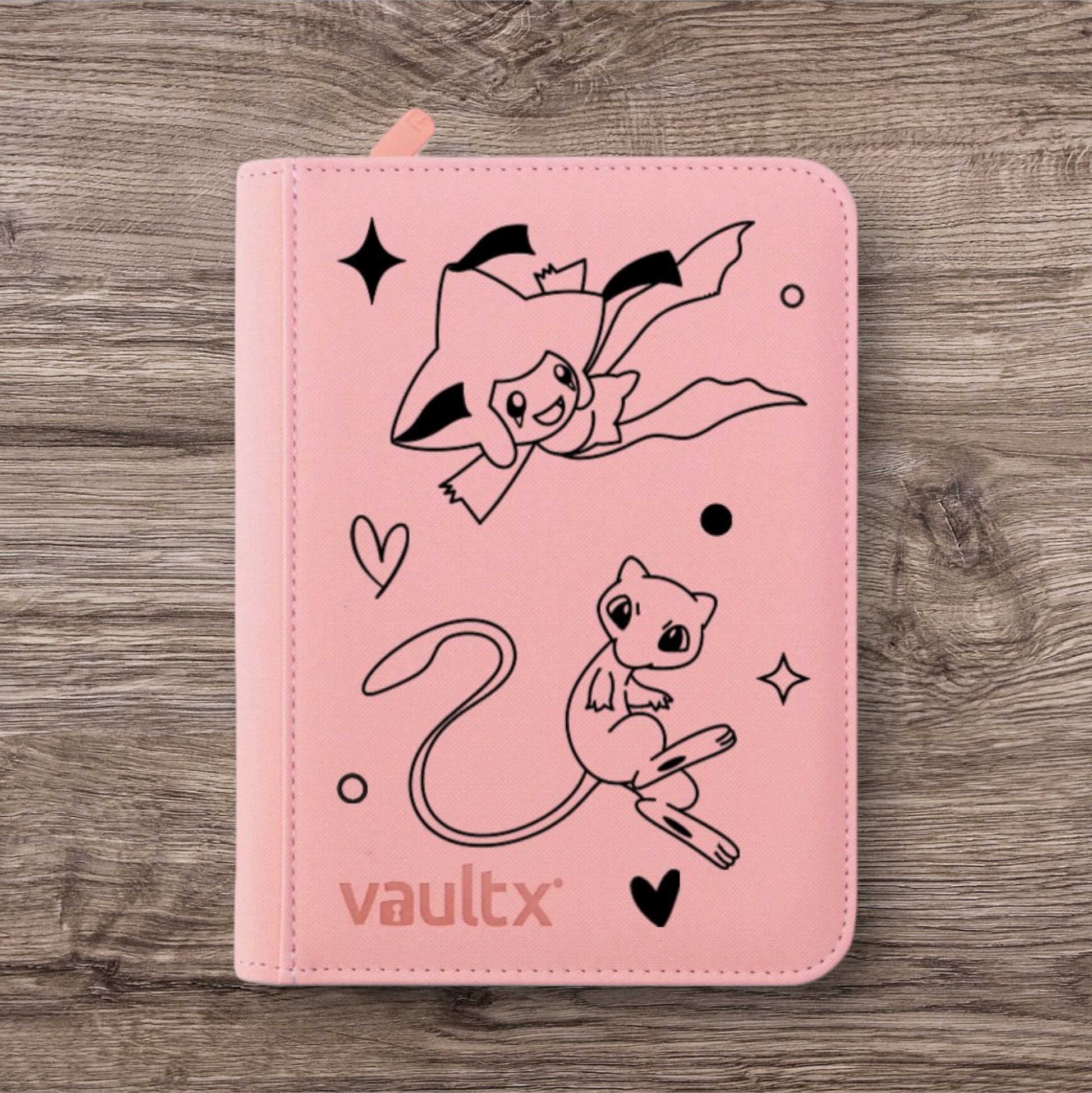 Custom Made Vault X 4 Pocket Pink Zip Binder / Folder for TCG collection – Jirachi & Mew